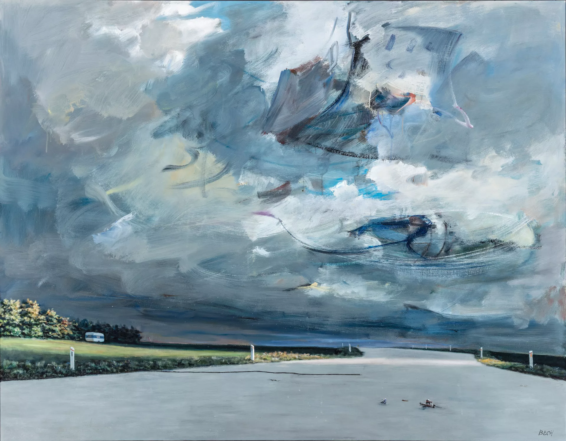 Med sit fokus på vejen taler kunstnerens værker ind i og bibringer nye perspektiver på aktuelle samfundsspørgsmål – omkring vejen som på én gang et uundværligt infrastrukturelt landskabselement, der knytter Danmark (og verden) sammen, og et menneskeligt indgreb i naturen. Disse forskellige veje løber parallelt i Poul Anker Bechs billed-univers; fra en opmærksomhed på vejens æstetik til en refleksion over de spor, mennesket sætter i landskabet.